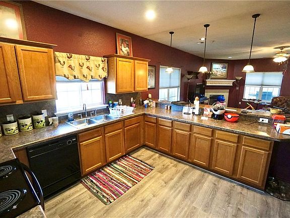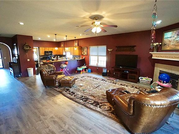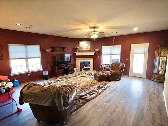 Open floor plan with formal dining. Breakfast bar opens to living area w corner fireplace. Electric range w/ built in microwave, dishwasher, pantry. New vinyl flooring thru-out home. Master bedroom w ceiling fan, double sinks, walk-in closet. Exterior has wood fence around back yard, covered patio, new roof September 2020, A/C in 2016, H2O Tank in 2016, two new windows.