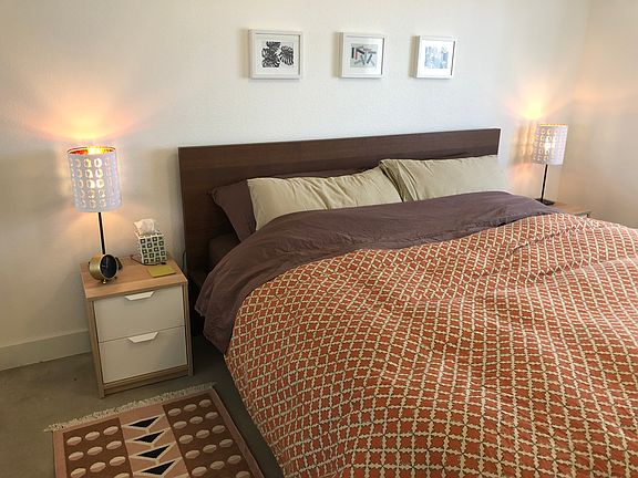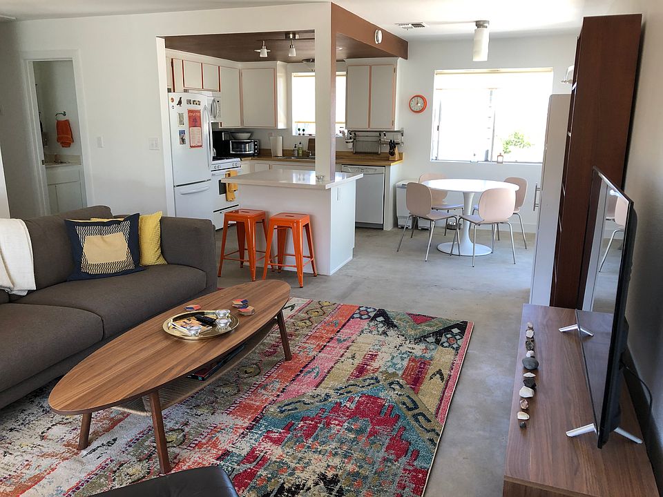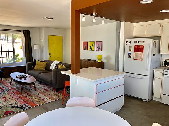 Available starting Jan 15: Welcome to this bright and tranquil getaway in Joshua Tree, California. This beautiful fully furnished 3-bedroom, 1.5-bathroom home is perfect for your stay in the California desert. The entire house is comfortably furnished, offers lots of natural light, ample storage, and calm outdoor spaces. The primary bedroom offers a king-sized bed, the second bedroom features a queen-sized bed, while the third bedroom is set up as an office with a monitor and keyboard you can connect to your laptop. The office also has a comfortable sofa that transforms into a queen-sized bed, perfect for extra sleeping. All linens are provided and every bedroom has a ceiling fan. The primary bedroom has a full en-suite bathroom. The shower/tub room can also connect to the 1/2 bath in the hall - making for a convenient jack-and-jill bathroom configuration. The main living area is a bright, open floor plan with a relaxing living room (w/ smart TV), fully equipped kitchen, and comfortable dining area. Full-sized washer/dryer are located in the garage. Outside, the backyard patio provides a cozy sitting area and a hot tub - creating the perfect setting to watch the sun rise or set. Convenient parking for 2-3 vehicles is available in the driveway. Note that your furry (well behaved) friend is welcome to join; this property is pet-friendly. This house is ideally located within a short drive from a myriad of dining options, cafes, retail, and the National Park - where you can hike, rock climb, and explore. Your perfect retreat awaits; book now! Rent is $2,500 Minimum 3 month lease; maximum 12 month lease. There is a one-time $150 cleaning fee and a one-time $200 pet fee. Utilities are included, but capped and tenant will be responsible for the difference of any utility bill that exceeds the cap. The front garden/yard and hot tub maintenance is done by a 3rd party and included in the lease. No smoking anywhere on property.