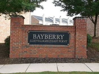Upscale tri-level townhome in Bayberry at Villages of East Point with oversized 1 car garage. Lower level has bdrm and full bath, main level living area has all hardwood flooring, appliance equipped kitchen with smooth top range etc. Upper level has dual masters. All electric, new paint. Clubhouse, pool, playground and public transportation. Beautiful!!