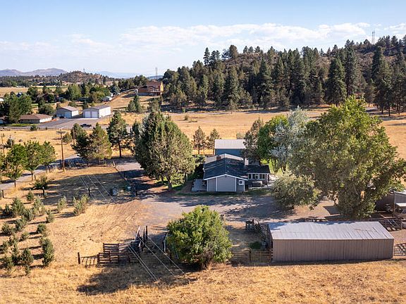 Beautiful setting in the trees with privacy and mountain views. Solid home built in 1961, recently remodeled, featuring 4 bedrooms, 1 &1/2 baths, Living room with fireplace, & large TV/Rec room for entertaining. Many upgrades including vinyl windows, new paint, roof and gutters, new flooring, new lights, 6 new ductless Mitsubishi units for heat & A/C. Dream kitchen with wood cabinets, garden window, solid surface counters and all appliances. On approx.18 + acres, fenced and cross fenced, 3 stall barn with power, water & tack room, corrals, pole barn for hay storage, new 36X36 METAL SHOP with 14' door. Cool & shady back yard, with deck, 4 raised garden beds, above ground pool & hot tub on the new patio. Private yet close to town.
