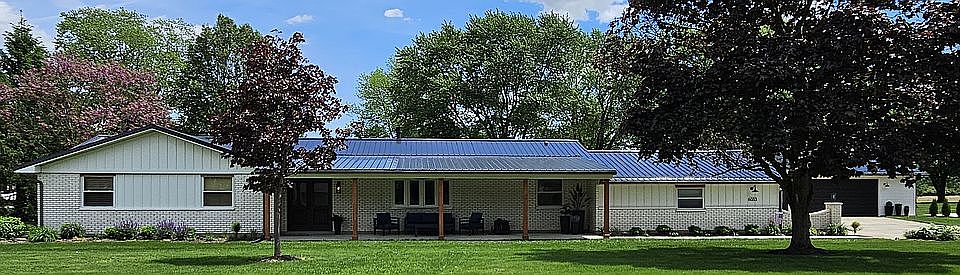 Just minutes from I-75 and in a country setting, 6033 Detrick Rd is located in Monroe Township (no city income tax) and the Tipp City School district. This brick home is almost 2000 sq. ft. and a large, heated sunroom giving an additional 300 sq ft with an adjoining 10 x 13 stamped concrete patio. Large 24 x 24 heated (gas) attached garage and a 672 sq. ft. heated (electric) detached garage. There are 3 large bedrooms, 2 ½ baths and large laundry/nursery/craft room with closet. The master bedroom has two closets and attached bath with walk-in shower. Open concept floor plan with an island separating the large kitchen and family room. Granite counter tops and newer appliances. The interior has been freshly painted a neutral color. Enjoy the gas fireplace centrally located between the kitchen, dining room and familyroom. Over a half-acre, professionally landscaped, corner lot. The home is wired for cable or fiber and has a Ring alarm system with Ring doorbell and Ring camera flood lights. Metal roof added in 2023, newer water system 2023. The concrete drive has an extra parking pad by detached garage. Gasoline generator and natural gas heater in garage will convey. Willing to work with Realtors. Sit on the front porch and enjoy the beautiful sunsets!