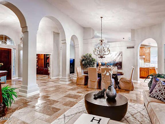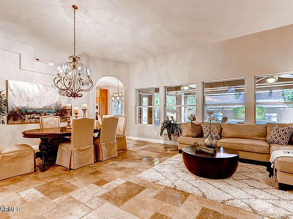 Updates Galore!! Fabulous home that is truly move in ready. Gourmet Kitchen with 8 foot island, Viking Panel Refrigerator, 5 burner Gas stovetop and wine fridge. Open floorplan with 16 ft vaulted ceilings. Large master bedroom with spa bath including jetted tub and custom shower. Travertine flooring continues both inside and out. Pool updated in 2013 with new Pebbletec, addition of water feature and new pool equipment. Private oversized south facing backyard with extended patio covering, stone deck, misters, built in BBQ and large grass area. Even the AC units are less than 2 years old. Blocks from North Ranch Elementary and Pope John XXIII. Minutes to Kierland and Desert Ridge with easy access to 51 and 101.