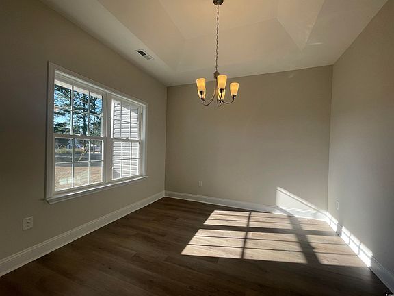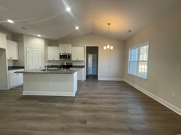 New Construction at Flossie Meadow! This is the Elm floor plan that will be on .51 of an acre. This home will have a brick accent in front with a nice size rear covered porch. The kitchen comes with 36" and 42" white staggered cabinets with crown molding, granite countertops and stainless steel appliances. The flooring will be waterproof Laminate Wood in Living Room, Kitchen, Hallways, Foyer, Pantry and Dining area, all Bathrooms, Laundry and Carpet in all the bedrooms and closets. The bathrooms have stained cabinets with white cultured marble countertops and double sink in the master bathroom. Master Bedroom has 2 walk in closets and a linen in the bathroom. Home has a completely trimmed and painted garage with drop down storage access. Located not far from shopping, medical offices and hospitals, restaurants, schools, and only 40 miles to Myrtle Beach. Building lifestyles for over 40 years, we remain the premier home builder along the Grand Strand. We’re proud to be the 2021, 2022, 2023, and 2024 winners of both WMBF News' and The Sun News Best Home Builder award, 2023 and 2024 winners of the Myrtle Beach Herald's Best Residential Real Estate Developer award, and 2024 winners of The Horry Independent’s Best Residential Real Estate Developer and Best New Home Builder award. Pictures are from another of the same model built elsewhere and may have different features/upgrades. Welcome home to Flossie Meadow!