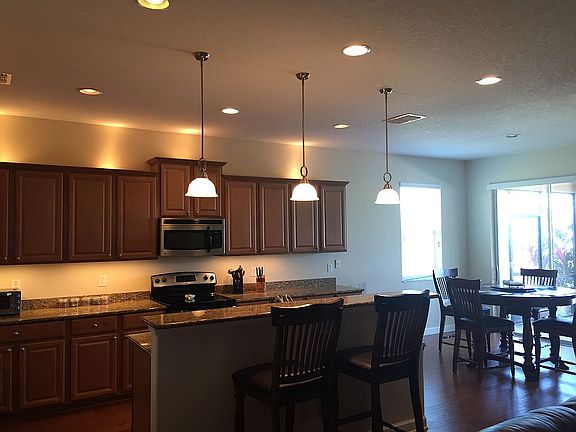 Upgrades, Upgrades, Upgrades! From wood floors, to a 1500ft screened in patio with outdoor kitchen to EXTENSIVE recessed lighting in every room. This semi custom home is sure to impress! Lake views, a large lot, 3 car garage, expanded driveway, and new hot water heater. Large bathrooms and walk in closets. Walking distance to manatee elementary.