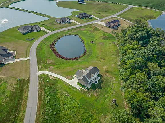 Welcome to this stunning home in 16 West, an extension of Chantilly Village, just 10 minutes from Waterloo. Nestled on a peaceful 2.5-acre lot, this 2022-built home offers modern comfort in a serene, tree-lined setting. The neighborhood features scenic ponds and a cart path to Acorns Golf Course. The charming exterior includes a spacious covered front porch and a back patio perfect for gatherings. Inside, enjoy a bright, open floor plan centered around a cozy fireplace. The kitchen boasts a large island, ample counter space, and a flexible dining area. The main-level primary suite offers a private retreat, while three additional bedrooms upstairs provide ample space. Marble flooring enhances the bathrooms. Additional features include a main-floor laundry room, three-car garage, and an unfinished basement with a roughed-in bathroom and egress window. This turnkey property offers a peaceful lifestyle with modern amenities. Don’t miss out on this beautiful home! Additional Rooms: Mud Room