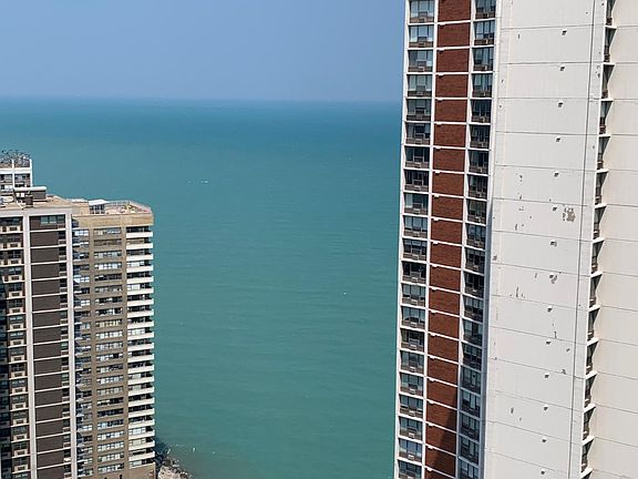 Beautiful, very spacious (approx. 1100 sq. ft), Corner Unit in a high riser building on higher level floor, 1BR and 1Bath condominium with walk in closet, with a large balcony. Beautiful views of Lake Michigan from all rooms with floor to ceiling large glass windows. Stunning sunrise and sunset. Open Kitchen plan, wood laminate flooring in living room, bedroom and closet. Marble flooring in kitchen and hallway. Full amenities resort style building with 24 hours doorman, billiard room, children's room, library, party room, gym, sauna, three swimming pools, tennis courts, Racquet Ball court and Teen room with Ping-Pong table. An updated Laundry Room. Four modern high speed and one large service elevators. Monthly Valet parking available immediately. The lower level of the building has a convenience store, private Gym, realtor, dentist, therapist and a family doctor. Express bus to the Loop from across the building. One month rent is required as a security deposit. Just 5 minutes' walk to Thorndale Beach. One block from Thorndale/Granville red line station. CTA bus outside the building.