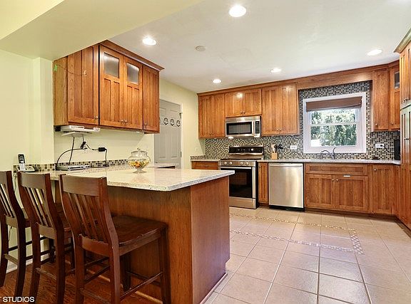 Wonderful family home ready for you in desirable DG neighborhood. Walk to schools, parks and YMCA. Stunning Kitchen with spectacular solid hickory cabinets, granite counter tops, glass-tile backsplash, pantry & SS appliances. Beautiful dark hardwood floors throughout w matching custom stair rail. Finished basement with outside access adds an additional 700 SF for even more room to play. A Bonus room with separate outside entrance behind garage could be office or awesome man cave. Newer furnace, A/C, energy efficient windows, tear off roof & sump pump. Make your own oasis in the over-sized backyard! *over 2000 SF living space. Priced to sell