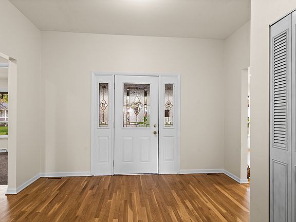 Enjoy the welcoming covered porch to this 3 bedroom 2 bath ranch. Gleaming hardwood floors greet you in the open foyer. The light and bright spacious living room with new carpet overlooks the backyard. Enjoy the fireplace in the cozy family room highlighted with wainscoating and hardwood floors. The kitchen has granite counters, stainless steel appliances and hardwood floors. The entire interior of this home has been freshly painted and the hardwood floors refinished. Half a block to the grade school. Updates include HVAC 2016, roof and siding in 2020. New hot water heater 2024.