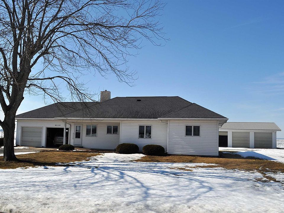 Located on 1 acre you will find a very well kept 2 bedroom 1 bath ranch style home with large spacious living room, new vinyl flooring throughout home and a 2 car attached garage. Also, included with property is a 24x62 ft. 4 car garage with one bay heated, and all with concrete flooring and electric, also a 24x30 pole frame building with concrete floor and electric. Great location with lots to offer.