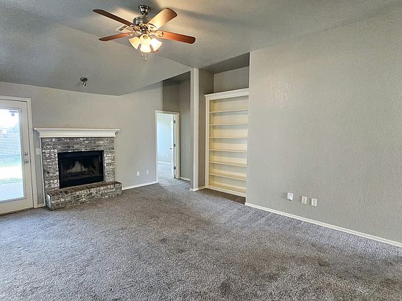 Welcome home to this inviting 3-bedroom, 2-bath gem located in the desirable Cambridge Park Addition. Step into the spacious living room where vaulted ceilings, ceiling fans, and a charming fireplace with built-in bookshelves create the perfect place to unwind or entertain. The kitchen offers a practical layout with a medium-sized pantry, plus a stove and dishwasher already in place ready for everyday cooking and casual meals. The primary suite is a relaxing retreat, complete with a large walk-in closet and an en-suite bath featuring a Jacuzzi tub and separate walk-in shower. Both additional bedrooms are comfortably sized, each with oversized closets for ample storage. You'll also love the dedicated laundry room, which includes upper cabinets to keep things tidy and organized. Out back, the spacious yard offers plenty of room for entertaining, weekend BBQs, or simply relaxing in your own private space. Don't miss your chance to lease this beautiful home in a peaceful and convenient neighborhood! -Animals upon owner approval w/ min. $250 non-refundable fee. Fee is subject to change. -Tenant responsible for all utilities & all lawncare