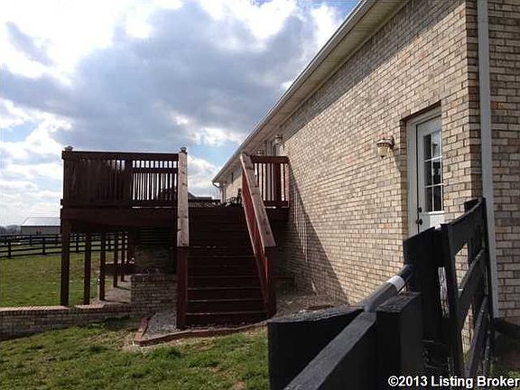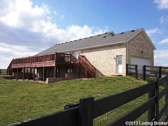 Wonderful brick walkout ranch style home on 5 acres near Bagdad Ky! Just minutes from Shelbyville Rd/Hwy 60 or Bagdad. This open floor plan home has been upgraded throughout! New carpet in bedrooms, and beautiful wood type laminate floors in foyer, kitchen, great room and hallways! The kitchen has been updated with new granite countertops, composite sink with new faucet, paint and flooring! Kitchen features large bayed eating area, 2 large pantries, recessed lighting, and all appliances will remain! Two spacious bedrooms have new carpet, and each have walk in closets! Master bedroom suite has TWO large walk in closets with new carpet!! Door off Master bedroom walks out to deck! Master bath features large vanity, shower and commode in separate room, new paint and light fixture. Huge unfinished walkout basement with rough in for bath! Oversized two car garage with paved driveway. Deck is over 55" in length! Back yard is fenced with newer four board fencing. Good sized pond on acreage. New landscaping includes fruit trees in back, newer bushes and plantings in front. Several new windows and doors have been installed!