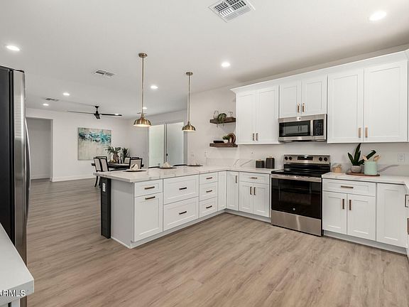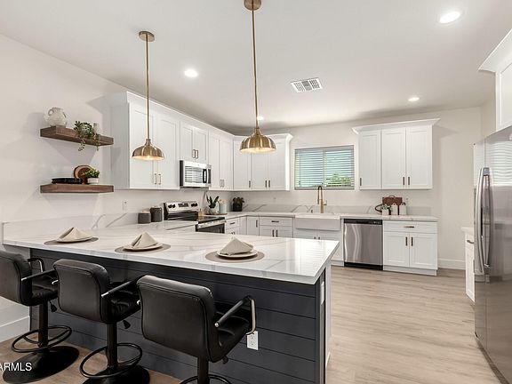 Price Adjustment! Step into something truly special—this brand-new home in Glendale's charming Floracroft Historic Community blends historic character with modern comfort. Built with 2x6 construction, spray foam insulation, and set on a spacious 7,000+ sqft lot with NO HOA, this home offers true freedom. Located at the end of a cul-de-sac with side gate access for toys or trailers. Inside, the split floor plan flows beautifully with a massive peninsula island, floating shelves, and designer finishes throughout. Just 3 miles from State Farm Stadium and Westgate, you're minutes from world-class dining, shopping, and entertainment—but far from cookie-cutter homes and strict rules. This is more than a home—it's a lifestyle. Bring your clients—this home is a standout!