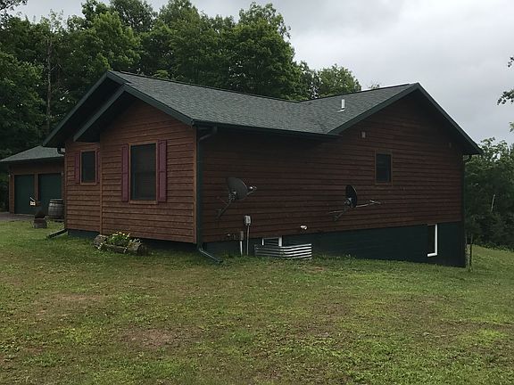 Stratford home built in 2008 sitting on 7 1/2 beautiful wooded acres with southern exposure off the back deck. Walk out basement with cedar siding. Home includes 4 bedrooms, 3 baths. 1420 square feet on main floor with 1220 square feet in the lower level with big rec room, 2 bedrooms, 1 bath and office room. Walk in closet in master bedroom and master bathroom. Total approximate 2640 square feet. Excellent well water and septic system. 2 car attached garage with mud room off garage entering kitchen. 2 miles from town, 1 mile from Hurley k-12 school. Located on blacktop road, access to atv and snowmobile trails right from your driveway. Hunt out your back door.