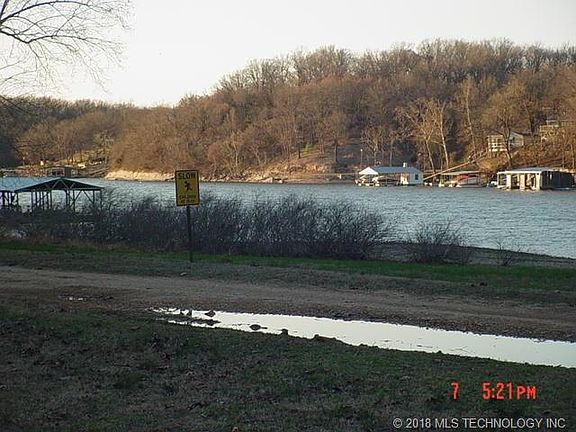 Great view of the lake, gently sloping with approx. 169.62' of waterfront (mol). Area known as courthouse hollow on Grand Lake of the Cherokee. Mobile needs a lot of work but the land and view is awesome & peaceful. Sold at time of listing.