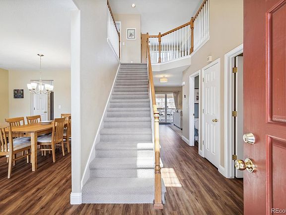 Welcome to this stunning 3 bedroom, 2.5 bathroom, with brand new (2023) 5'' trim throughout the 2 story house . Inside, the house has been meticulously maintained and is move-in ready. This beautiful home boasts an open floor plan that is perfect for entertaining guests and spending time with family. The spacious living room features 2 large bay windows that let in plenty of natural light, making the space feel warm and inviting. The kitchen is fully equipped with stainless steel appliances, ample counter space, new recessed lighting, and plenty of storage. There is also a convenient half bathroom on the first floor for guests with a door to the office. Upstairs, you'll find two generously sized bedrooms with their own private bathroom and a Primary Suite. The primary suite is a true oasis, with a newly remodeled luxurious, fast filling soaking tub, a separate shower, HEATED Floors and a walk-in closet. The Professional landscaped backyard (with smart/wifi sprinkler controller) is perfect for summer barbecues and outdoor gatherings, with plenty of space for seating and a lush lawn and views to the green space (no neighbors). As you sit on the newly refinished deck, you can enjoy sunsets as you look at the mountains (and if it get's too hot use the remote to extend the awning). The house also has a two-car garage, providing plenty of space for parking and storage.