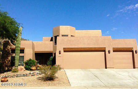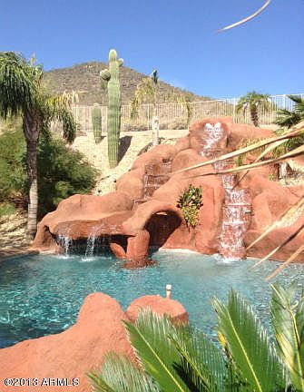 **PARADISE FOUND ! Stunning RESORT Back Yard backs up to the Desert Preserve ! Huge Rock Waterfall flows into an Enormous Pebble Tec Pool..This Elegant home has Cherry Cabinetry & Travertine Stone Floors..Granite Counters in Kitchen & All Baths..High Ceilings..Upgraded Chandeliers..Music System throughout..Active Security System..New Roof w/Warranty..New Pebble Pool Finish w/Warranty.. Back Yard Boasts Mountain VIEWS & PRIVACY, Tons of Flagstone Patios, Built-in BBQ Island, Gas Firepit & Elevated SPA for star-gazing..Gorgeous Saguaros & Mature Palms..Indoor Aqua-Link Controls for POOL Pumps & Lights..3 Bay Garage has Cabinets,a Workbench & Epoxy Floors..Double Gate with a Stuccoed Storage Building..You cannot build all of this for this price today..A great value ! ( Traditional Sale )
