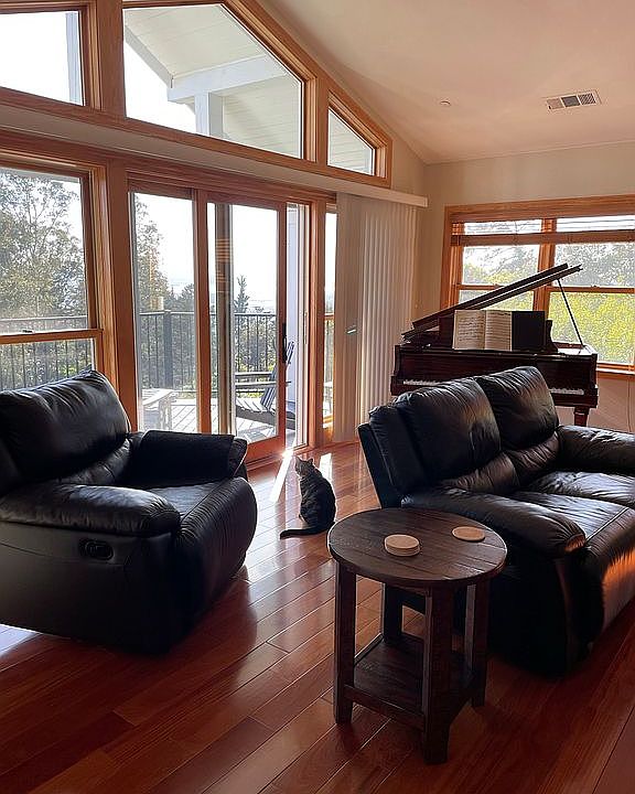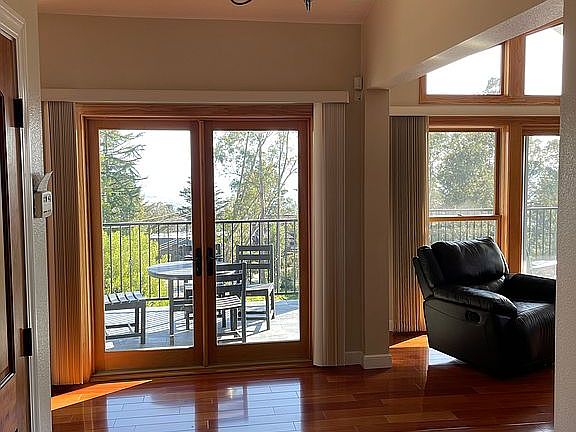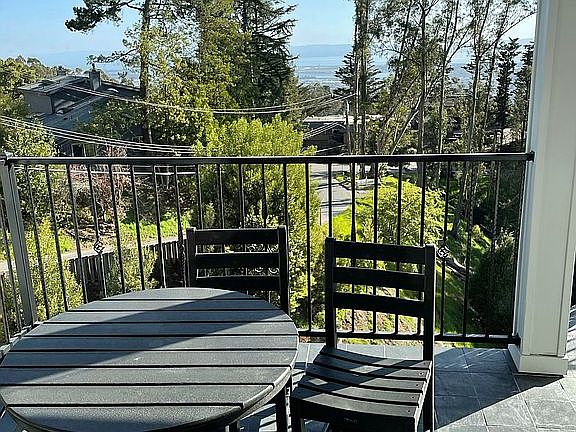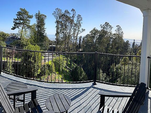 Contemporary Modern Piedmont Pines home with open floor plan, skylights, fabulous natural light backing up to several acres of open space. Modern finishes, air conditioning, nine solar power panels and sweeping views; quiet and private. Kitchen with maple cabinets, designer slabs and dining area overlooking the canyon and panoramic bay views views; office, living room, 5 bedrooms & 3.5 baths. Two-car garage plus additional parking. Two balconies, master bedroom with oversized walk-in closet, master bath with jacuzzi and four-nozzle spa-like shower; designer tile and custom cabinets. Three miles to top-rated private schools, including Head Head Royce, Bentley, and College Preparatory School; top of the line security system, thermostats, ring video doorbell and ring cameras. Easy access to Bart & public transit, casual carpools, freeways, & San Francisco.