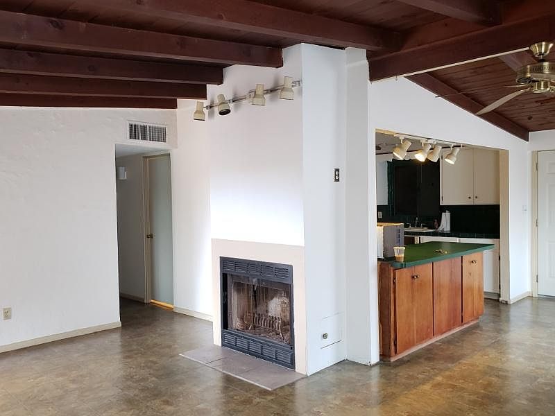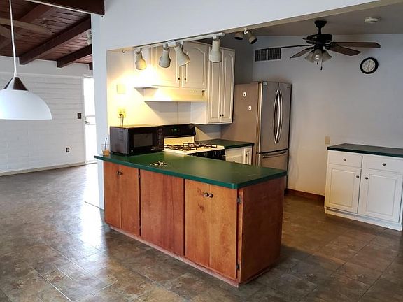 Property Id: 78543 Charming 3 or 4 bedroom, 1-3/4 bath home available for rent. Great floor-plan, L-shaped LR/GR w/vaulted, wood-beamed ceilings and fireplace. Open, kitchen w/ gas stove, great counter space, dining area. Carpeted Master Bedroom w/three-quarter bath, custom closet, and an extra room perfect for nursery, exercise room or office (with window A/C.) Triple-paned windows make E/C feel like A/C, only cheaper! Garage w/workbench & laundry (W/D) included. Fenced yard and covered patio w/ceiling fan, pets ok! Large corner lot on a non-outlet street w/wash and greenery. Central location near bus line to UofA, downtown. Lots of improvements: triple-pane windows & doors, ceiling fans, new fixtures & tile in both baths. $1300/mo w/1 month deposit, non-refundable pet deposit, if applicable, negotiated at signing. 1 yr lease preferred. Application fee to TurboTenant is required.