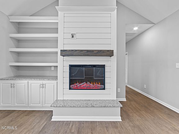 Vaulted ceilings and open concept floor plan with custom built-ins with a fireplace. Tray ceilings in owner suite, full tile shower, two vanities and huge walk in closet. Awesome drop zone, generous laundry with folding table. Home sits on just at an acre in Wilson with I-95 and 264 at your fingertips. Major dining, medical, industry and shopping just minutes away. Enjoy fiber internet too! Mirrors and shower door will be installed.