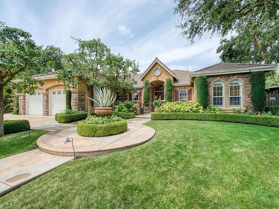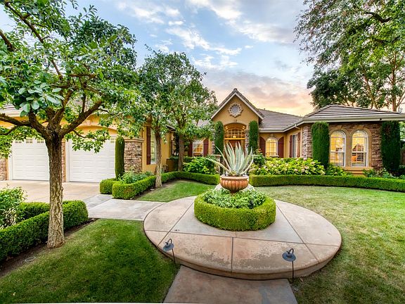 This is the ultimate entertainer's paradise! Situated in a quiet NW Fresno gated development this single story home has a great family floor plan and every amenity you could imagine & more. You will immediately be impressed with the handsome elevation and the gorgeous landscaping with mature trees. Upon entering you will love the designer colors, custom window treatments, fixtures and 8 foot doors. The master is a true retreat with 2 huge closets, fireplace and a spa like bathroom. There is one isolated bed/bath. There is also a large bonus/game room with stone floors, custom lighting and a moving glass wall system that opens to the front and rear yard both. Open the doors for entertaining and it's time to have fun! The lush rear yard features a beautiful pool, spa, multiple covered patios, grass area, built in bbq and raised garden beds. This is also a fully automated smart home; lighting, climate, security, and distributed audio throughout. Bed/bath count/sqft differ frm tax records