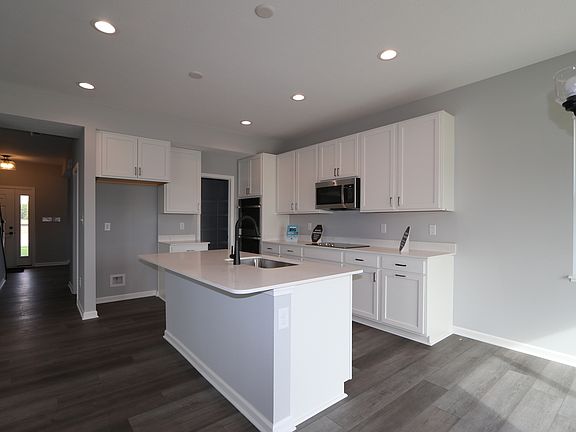 This 2-story home boasts 4 bedrooms, 2.5 bathrooms, and a 2-car garage. Step inside through the inviting front door and be greeted by a flexible room just off the guest entry. As you continue, you'll come across a conveniently located half bathroom before entering the kitchen with an adjacent dining nook. The gathering room is bathed in natural light from 3 large windows on the back wall. You'll find the mud room and the owner's entry next to the garage. Venture upstairs to discover your owner's suite, 3 secondary bedrooms, and the laundry room. The secondary bedrooms share a full bathroom, while the owner's bedroom offers its own en-suite bathroom with a dual-sink vanity and a walk-in closet.