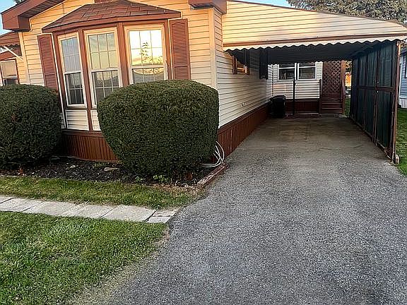 Perfect starter home, comes with everything you need, stove, fridge, dishwasher, washer, dryer, microwave, toaster oven, kitchen table and chairs. Amazing location right near everything-Walmart, Tops, Aldi’s, an abundance of food options. Bring your cosmetic touches to make it your own. Place is located in the mobile home park, The Village, on a nice quiet road. Lot rent is $455, includes water and garbage! Does require park approval. Has two additions attached to the place for extra storage not part of square footage. Also a nice sized shed in the back and a carport to protect your car from the weather all yr long. Major updates Windows -2007 Roof-2012 Furnace-2019 Hot water heater- 2021 Will be reviewing offers as they come in.
