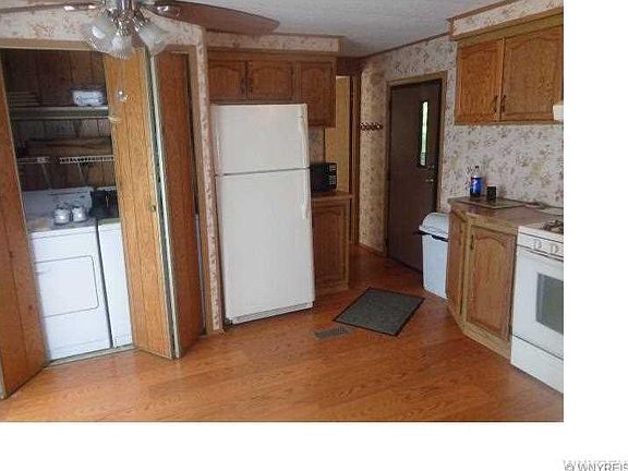 No reasonable offer refused! To settle estate. Updated roof-3 years. New skirting-2 years. HWT 2 years. Gas furnace and C/A about 10-12 years. Nice side deck and awning. Large shed. Eat in kitchen w/ample cabinets and countertops. Large living room with 12X6 tip out. Master bedroom with full bath. House bath along with 2 other bedrooms. All appliances included. Call office to schedule an apt today.