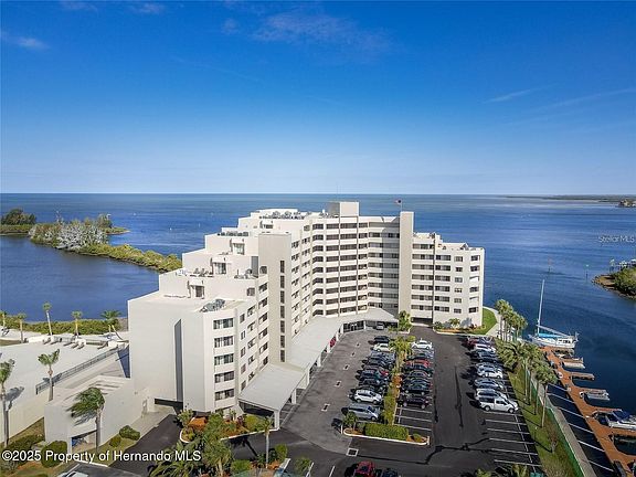 Wow direct Gulf of Mexico views from your living room! No lawn mowing or pulling weeds here! Maintenance free condo gives you the resort lifestyle you are dreaming of. Kitchen features plenty of cabinets, full appliance package. Dining room/ living room combo with three sliding glass doors overlooking the azure blue Gulf of Mexico/ there might even be a dolphin out there! Primary bedroom is spacious with built in storage cabinets, another sliding glass door that leads to an enclosed porch could possibly be an office. Primary bathroom features his/her sinks, tub/shower combo. Second bedroom has a walk in closet and window overlooking the water. Hall bath features a large walk in shower. All tile no carpet, crown molding, inside laundry room with a stackable washer/dryer, tankless hot water heater, Culligan water softener, there are electric hurricane shutters on the windows and sliding glass doors, Newer CHA, the unit comes with one parking spot, storage unit by the parking spot and this condo comes with an **Extra storage unit to the right of the elevator unit CC it's apprx. 20X12 with a dehumidifier and portable ac unit per the seller valued at 20-30K**Gulf Island Beach & Tennis club is all ages and allows pets, pool, tennis, gym, 24 hour guard, Oh did I mention the view?? Great location close to shopping, restaurants, hospitals, Hudson Beach, Clearwater Beach, Tampa Intl. airport, Buccaneers Stadium, Tampa Bay Lightning stadium, International Mall.