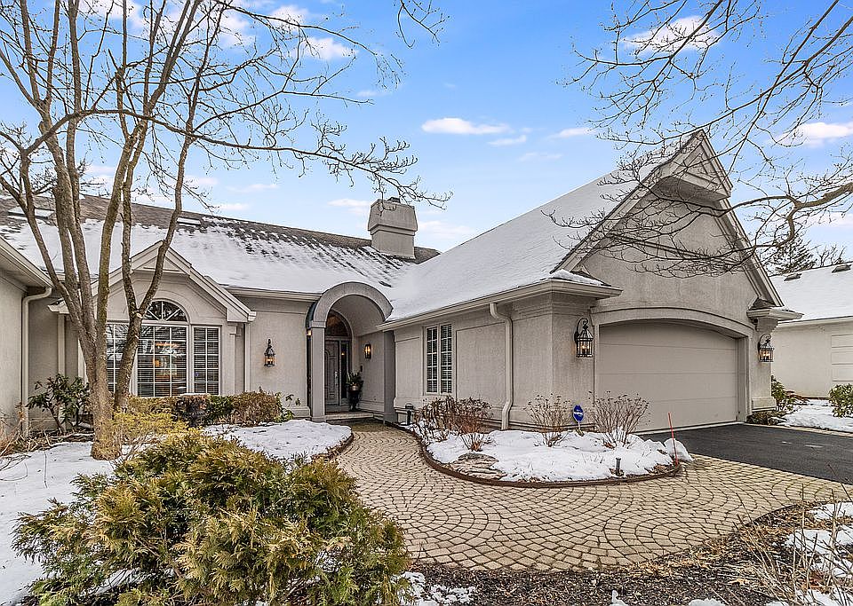 Upscale condo nestled on a private road with breathtaking water views. Elegant design and distinctive architectural details you won’t find anywhere, even new construction. Custom barrel ceiling in a dramatic yet welcoming foyer. Open concept living with large dining room boasting built ins for all your special dishes. Vaulted great room with gas fireplace, Palladian windows and skylights overlooking water. Executive-style den with wood burning fireplace and gas starter, in rich wood tones and wet bar. Gourmet kitchen is the heart of this home and features a center island with breakfast bar seating and a gas cooktop, abundant cabinet and counter space, built in desk, wall oven and microwave. The informal dining area opens to the adjacent vaulted sunroom with skylight and deck access. Private owners suite includes vaulted ceilings, dual closets, and luxurious shower and spa tub plus double sinks and armoire. Guest bedroom offers generous space with a quiet window seat, vaulted ceiling and direct access to hall bathroom. Finished lower level offers large space for rec room or a third bedroom, plus a walk in cedar closet, large laundry room and huge unfinished area for storage. Expansive deck offers space to entertain or simply relax and enjoy the nature-filled views of the water and woods.