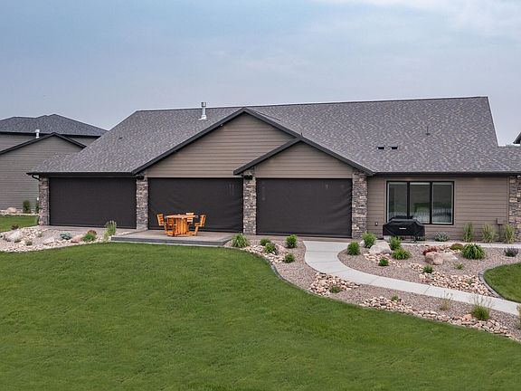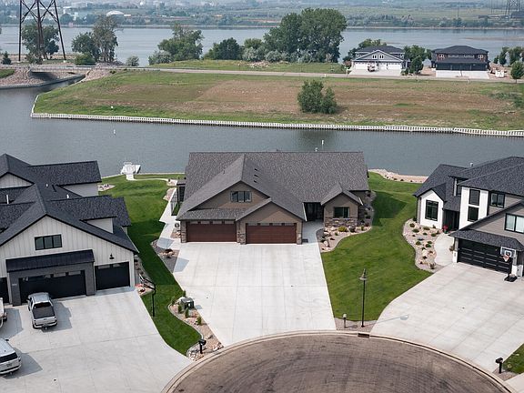 Welcome to this fantastic summer paradise patio-style home in Misty Waters! Here is your chance to own a beautiful waterfront home outside Bismarck. The moment you arrive, you will notice the tremendous curb appeal this home offers. It is located at the tip of a Cul-De-Sac, giving you a large waterfront area in the back of the property. There was no expense spared with the fantastic landscaping that was completed only a few years ago. The landscaping features abundant plants, curbing, rock, and a concrete walkway to the dock location that features a clean water hook-up, sprinkler system, and a beautiful stamped patio area. The stamped patio area features a grill station with an exhaust hood, a mini fridge, and a built-in pullout trash can. It also includes a hot tub with a sound system and custom cover, a speaker system with extra speakers above the hot tub, radiant heaters, a fireplace, and motorized patio screens, making it comfortable year-round. Once you enter this soon-to-be home with floor heat throughout, you will notice a significant entryway and a living room with a lovely fireplace wrapped with beautiful rock. The kitchen features custom full overlay cabinets from Creative Woodworks with the soft close feature, Quartz countertops, Dual Ovens, Pot Filler above the cooktop, Kitchen Aid Appliances, a walk-in pantry, a sound system, and wonderfully selected light fixtures. The dining room features a sliding glass patio door leading to the stamped patio area, a TV, a speaker system, and a beautiful water view. The first bedroom right off the dining room features patio access, a walk-in closet, a water view, and a speaker system. Across from that is another nice-sized room. You can then venture through the kitchen to a hallway with a 1/2 bath, coat closet, bench, hook area, and garage access. The finished 4-stall garage features floor heat, epoxy floor, 3-floor drains, a mechanical room that has access to a doggy/side door that leads to a kennel area that has artificial turf, and access to an 8'X8' Shed, secondary heat source, shelving wrapping around, A/C System, Extra lighting, speaker system, TV, and a fish cleaning sink station. As you return into the home, you will be taken to the Primary Suite next to the living room and entryway. The Primary Suite features a large room with a water view, Patio access next to the hot tub, and a speaker system. The Primary Bathroom features a large walk-in tile shower that has two shower heads and a speaker system, Dual sink vanity with a makeup station that features a custom chair, a Toilet room with a privacy door, a large walk-in closet, and access to the laundry room from the closet area. The laundry room also has a folding station and a secondary access point from the main living area. That's not all! A large bonus room above the garage has a 1/2 bath, a zoned air system, and is pre-wired for a projector and sound system. This wonderful home also comes with motorized blinds, an entire security system, cameras around the exterior, and a ring-camera doorbell. The list goes on and on with all the bells and whistles this home has to offer, so don't miss out on this wonderfully taken care of home! Call your trusted REALTOR today for your private showing.