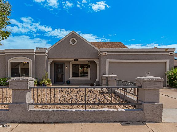 Adorable 3-bed, 2 bath home in Glendale with No HOA. Home enjoys a great room floor plan with kitchen looking out into living room. A creative past owner added a small loft above dining area perfect for play or reading. Owner's suite is split from other bedrooms and includes large bedroom, two closets with mirrored doors and updated bath with walk-in shower. Kitchen has new counter tops and includes all appliances. Additional 2 bedrooms, laundry closet and hall bath are on the opposite side of home. Nearly all windows have been replaced with dual pane vinyl frames. Home has larger backyard than many other homes in this area and comes with a covered patio and an RV gate with space for RV parking. Home is close to I-17 and the Loop 101 and just minutes away from shopping and entertainment.