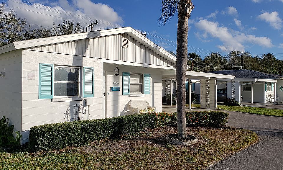 Welcome home to this easy living maintenance free 55+ community (Villager). End unit - 2 Bedrooms 1 bath with 2 car carport. Lanai is screened and has vinyl inserts with A/C heated for year-round enjoyment. Outdoor patio with privacy wall and storage unit. Updated kitchen, beautiful laminate floors throughout, freshly painted ceiling to floor. New A/C with UV Photo Max, all new air ducts. Low HOA fee $251 a month includes cable, exterior maintenance, heated community pool and active club house. Seller will credit $1200 for washer/dryer hook up. Selling "As Is" Open house: Sundays 10-3