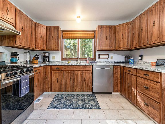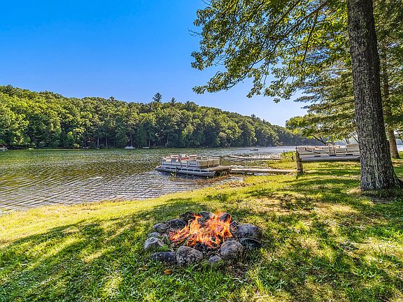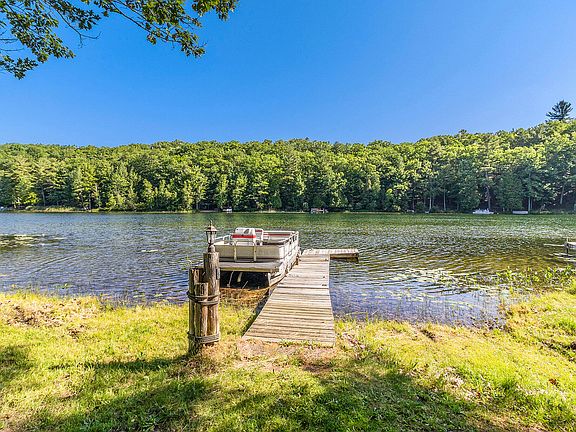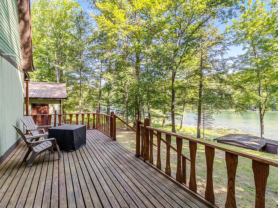 Welcome to your charming lakefront retreat on the tranquil shores of private Thunder Lake. This delightful 2 bedroom, 1.5-bathroom home boasts 81 feet of pristine frontage, providing an idyllic setting for serene lakeside living. The house features a spacious wrap-around deck, perfect for entertaining guests or simply enjoying the breathtaking views. Inside, the convenience of main floor laundry makes everyday living a breeze. Additional highlights include a boat house for all your lake gear and a 2-stall garage offering ample storage for vehicles and more. Thunder Lake, with its electric motors-only policy, ensures a peaceful and quiet environment, making this property an ideal getaway for those seeking relaxation and natural beauty. Don't miss this rare opportunity to own a piece of paradise on Thunder Lake! Pontoon may stay with the property. Dining room table stays. Invisible fence for pet containment.