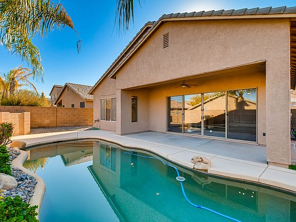The open layout of this single story 3 bedroom, 2 bathroom home is sure to dazzle! Step inside and experience the vaulted ceilings and spacious layout that gets a ton of natural light. The kitchen features quartz countertops, backsplash, a large island, and beautiful appliances ensure that cooking will be a chef's dream. After a long day, retire to the primary bedroom which has a private bathroom with double sinks, a soaking tub, and a walk-in closet. If you're looking to entertain guests, you'll love the private backyard with its covered patio and shimmering private pool. The location of this home is perfect for anyone looking to get outside, with Red Mountain Ranch Country Club less than 5 minutes away, Las Sendas Golf Club less than 10 minutes away, and Usery Mountain National Park just over 10 minutes away.