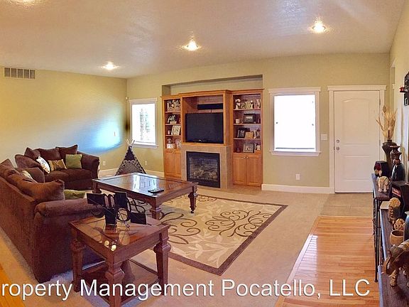 ELEGANT 4 BEDROOM HOME - Available March 1st Must see home in desirable south end of Pocatello. 4 bedroom 2 bathroom 3 car garage for rent. Nice Full size kitchen with granite countertops. Full Dinning area. Tile and wood flooring. Large master bedroom with full walk-in closet. Master bath with double sinks jetted tub and separate shower. Gas fireplace with built in entertainment center. Coverd deck. Full landscaped, yard mostly fenced with sprinkling system. Gas heat and AC Laundry area. Storage room. Pets negotiable (extra cost) Renters liability insurance is required through Real Property Management on all lease agreements. No Cats Allowed (RLNE3820447)