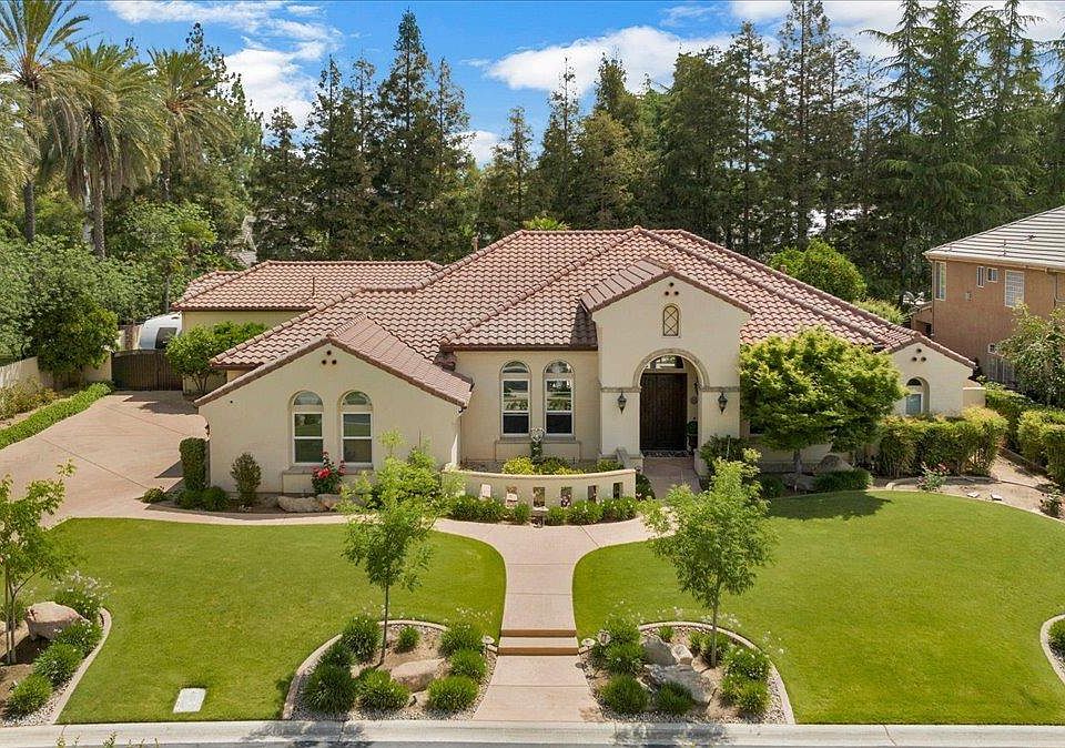 Turn into this beautifully-gated small community of ten elegant homes, and you've found Utopia, Shangri-La, and a little bit of Heaven right in Fresno! Privacy everywhere, with peace & quiet, the perfect escape from the cares of the world. Indoor/outdoor living melds into one grand retreat in an elegant, sophisticated yet very livable space designed for sharing. The public spaces are flanked by bedroom wings, the main suite with two separate walk-in closets, a sitting area, access to patio, spa-like bath; a second bedroom has a separate bath. The third bedroom is easily a guest or generational living suite offering privacy with a separated bedroom and sitting rooms, and a bath. This space could also be a home office, hobby room, library, etc. Formal and casual dining, wine closet, walk-in pantry, storage galore, large indoor laundry with sink/cabinetry/countertop. Covered patios are an extension of the home offering privacy, an outdoor kitchen & dining area, various seating alcoves, while the azure pool takes center stage. Around the pool are sunning and entertaining areas, a grassy play area, and garden sections for more hobby activity or meditation. Room for RV tucked away, just beyond the two-car garage and a separate single car garage, with cabinetry and work space. Very easy care yard. Fruit trees, Perimeter privacy fence, gates from front to back gardens.