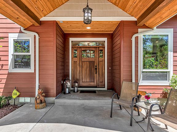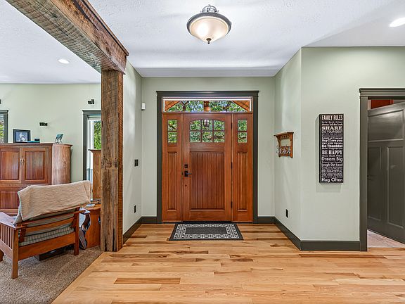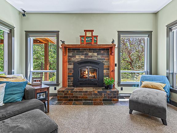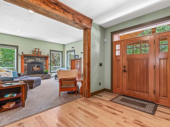 This idyllic country property is calling you home. Situated on a gated driveway, you're sure to love the privacy yet convenient close-in location. Beautifully appointed Craftsman-style home exudes warmth & charm throughout. Stunning hardwood flooring, exposed beam detailing & a cozy high efficiency woodstove enhance the primary level. Open & inviting kitchen w/ Hickory cabinetry, beautiful slab granite, slate backsplash & incredible light. Roomy breakfast bar w/ pendant lights, desk station & Double doors off the dining area leading to a covered patio overlooking the pond. There is one bedroom & full bath on the main level. Two addtn'l bedrooms upstairs, including the primary suite plus a loft/office space for overflow living. The primary suite has an incredible walk-in closet w/ skylight, a gorgeous bathroom, slate shower & charming clawfoot tub. There is also a small balcony overlooking the property. Two car attached garage, 700 SF detached shop. High speed internet is available.