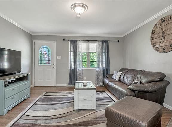 Adorable 3 Bedroom 1.5 bathroom ranch with great open floor plan! Spacious living room with hardwood flooring and crown molding that continues into the hallway. Bright eat-in kitchen with ample counter and cabinet space, a full pantry, ceramic tile floor and is open to the living room. Master bedroom has 1/2 bath. There is an attached over-sized one car garage. The full basement with walk-out could easily be finished to add additional living space. Enjoy relaxing on your large deck overlooking your private fenced yard backed by wooded area. This home is tucked away on a quiet street at the back of Whispering Winds Subdivision, close to shopping and restaurants. Move in ready!
