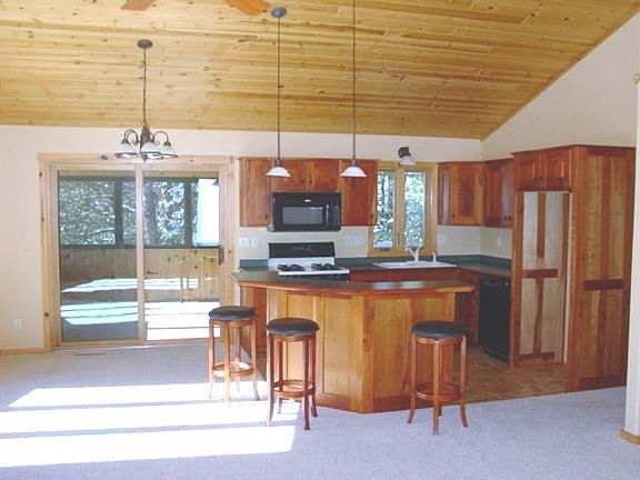 This custom built home, built in 2000, features 1/2 log siding, three bedrooms with large closets, two full baths vaulted living room ceilings with north woods views and custom cherry wood cabinets through out. The walk out lower level has a large family room with wet bar. The efficient heating system features in floor hot water heat in the lower and air condition ready forced air on the main level. Hazelhurst, has lower than average taxes that, combined with the heating system, makes for very affordable living. The large 2.55 acre lot with red granite drive has great vista views. This home also features a screen porch for seasonal enjoyment and a efficient wood burning stove for cozy winter nights. The oversize garage is large enough for your toys and storage. The home is in top condition and ready to move in.