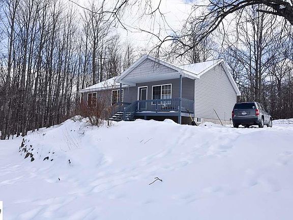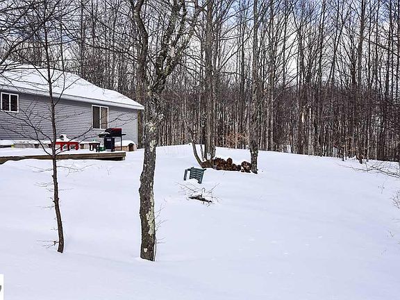 This 2,400 square foot home was built in 2002 and is perfectly located in Northwest Michigan, has a lot of what your family has been looking for in your next home of first home. As you enter this warm inviting home, the vaulted ceilings provide you with the openness every living room should have. The rooms throughout this home have received fresh, earth-tone paint and the bathrooms each have been recently updated with today's family's style in mind. The spacious galley style kitchen provides ample room for multiple cooks or one chef entraining their family and friends. Your family will absolutely enjoy the lower living area. During the beautiful Michigan summer nights, simply walk-out from the lower level and hang out by the fire pit and enjoy the views of the woods that border the east side of the home. If you have a large family or a need for additional storage, look no further than the three non-conforming bedrooms. The lower level has a shared bathroom from one of the non-conforming rooms as well as a kitchenette. Also, the lower level family room has a warm pellet stove to provide your home with a source of alternate heating during the cool winter nights. To compliment the pellet stove, a new furnace and AC have been installed within the last few months. While you or your family are enjoying the Northwest Michigan experience, you will need a space for your "toys". The 30x40 pole barn is just what you'll need. This home sits on 2.27 acres and is surrounded by state land and close to many inland lakes, including Torch Lake. Enjoying the great outdoors, the many festivals or relaxing on this piece of heaven, this home is Northwest Michigan.