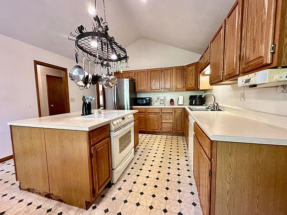 Rustic home on private wooded acres. Easy access to Marshfield or Hwy 60. Large eat-in kitchen with island, cathedral and beautiful windows. Cathedral ceiling in both the kitchen and the spacious living room with wood burning stove. Deck off the living room to enjoy the woods. 30 amp RV Hook-up onsite.