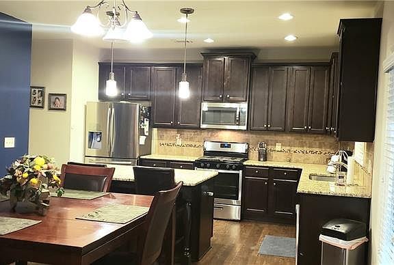 Nearly new home on walk-out unfinished basement. Main level features hardwood floors throughout,private office w/double doors,separate dining room,family room w/coffered ceiling and stacked stone fireplace open to kitchen w/granite,tiled backsplash,island,SS appliances,walk-in pantry. Spacious master bed w/two separate closets.Master bath w/dual vanity,granite,tiled shower and garden tub.Screened covered back patio w/gas fireplace and extended deck overlooking private fenced backyard. Addl poured concrete patio below deck.Convenient location near I-985/85, NEGA Med Ctr