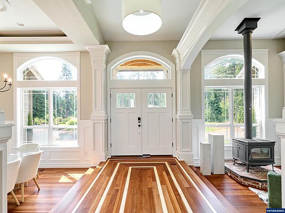 Spacious 5 bed/3.5/+office home located on Abiqua. 217 ft of creek frontage with access to the water. Tesla roof/4 Tesla batteries/1 car charging station (see docs). All new paint inside/out, hardwood floors, new carpet. Large ensuite primary plus 4 add'l bedrooms, office, craft room, family room and rec room with wet bar. Lovely koi pond, large covered deck, lower patio leads out to large lawn area. Garden shed, chicken coop and dog run. Plenty of room to build shop.