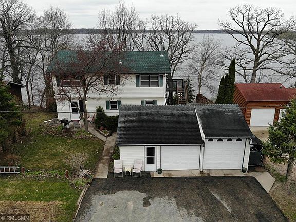 Highly sought after Maple Lake property. This home provides panoramic views of Big Maple Lake from Living Room, Family Room, Master Bedroom and 2nd upper bedroom. 3 large bedrooms. Master is 27x15 on upper level. 2 full baths. 15 steps down to the lake. Best fishing in Wright County. Hard/sand Lake area great for volleyball net - as it slowly get's deeper. Neighbors on both side - are mostly seasonal. 2018 roof. Tile flooring in bathrooms. Recent improvements include new maintenance free deck, new flooring on main and lower levels, new furnace,new boulder retaining wall and stone steps to the lake,finished heated garage, new windows and new stone fireplace.
