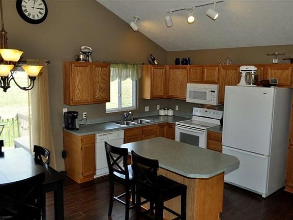 This is one beautiful 4 bedroom, 2 bath home offering over 1700sq' and many upgrades have been invested to make it one of the nicest in the neighborhood! You start noticing the difference when you open the front door... attractive main entry, stepping onto the main level you'll feel the improved flooring under your feet finished in a dark walnut which highlights the oak kitchen cabinets, a very well coordinated paint scheme flows through the house, vaulted ceiling over the open concept living ~ kitchen ~ dining area, sliders to a multi level rear deck overlooking the large and fenced in back yard, a warm and comfy feeling in all 4 bedrooms and 2 baths, a lower level family room currently set up in a sports theme with a fully operational wet bar! More? Central air, pvc decor fencing, wate softener, high speed cable TV available by Charter, all window coverings and a complete appliance package is ready for the new owner! This is a turn the key, open the door and enjoyment ready home!!