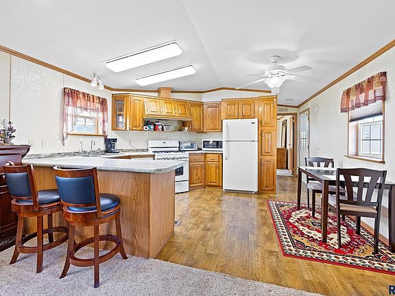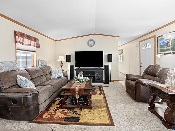 Welcome to this charming and well-maintained mobile home nestled in a clean and quiet mobile home park, Misty Glen. This 3 bedroom, 2 bathroom home boasts a unique feature in the neighborhood - an oversized 2 stall, fully insulated garage! Only about 1/3 of the homes in the park have a garage, let alone a 2 stall garage. The garage includes a storage attic, perfect for all your storage needs. Step outside onto the 12x12 deck and enjoy the peaceful surroundings, or make use of the 8x10 storage unit for additional storage space. The home and its additional features have been meticulously maintained, making it move-in ready for its new owner. The roof, furnace, and A/C are all about 7 years old, and the skylight is brand new. Don't miss the opportunity to own this unique mobile home with great amenities in a desirable neighborhood.