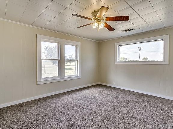 3 bedroom, 1.2 bathroom farmhouse on 1 acre in Joshua ISD! Large covered front and back porches. Metal roof. Scattered trees. Nicely sized bedrooms. Kitchen has a beautiful wood pattern on the ceiling. The upstairs room would make a great game room. This home has so much potential! Come make it your own!