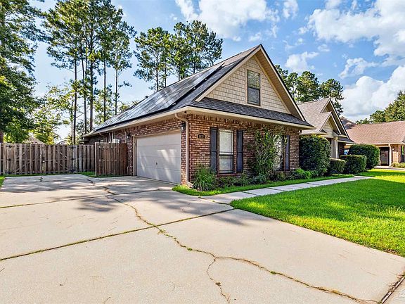 Exceptional home choice in coveted neighborhood of Stonechase. From gated entry to abundant greenery of trees galore, and all amenities that the Pace community has to offer, create an unparalled location. Contemporary Craftsman style with room to spread out or room to grow. Beautiful leaded glass doors open to foyer & expansive great room ahead. Formal dining room is to the left with a glimpse of stairway leading to expansive bedroom/flex space over garage. To the right is hallway access to 2 bedrooms & 2 baths. Kitchen is centered between great room & formal dining. Great room features high ceilings, plant ledge & corner fireplace. Double French doors access cozy covered patio & back yard beyond. Delightful kitchen with stunning white granite countertop & abundant white cabinets create bright & cheerful workspace. Stainless side by side refrigerator, built in microwave, smooth top range and dishwasher, plus pantry. Everyday meals are enjoyed at a breakfast nook with view of backyard. Laundry room is conveniently located off kitchen. Small entry hall leads to the primary suite which features a generous size, tray ceiling and fabulous bath! Double vanities with granite countertops over cherry cabinets, soaking tub with glass tile surround, separate shower accented with same glass tile & water closet. You’ll love huge walk in closet with real wood shelves! Additional bedrooms are more than adequate in size and have great closet space. Hall bathroom plus one bedroom enjoys private bath.4th bedroom is a flex space & could function as exercise room, home office, home school, music room, play room, etc. – whatever your individual needs are! Carpet here & on stairwell only. Remainder of home features light wood flooring or tile. Front yard is nicely landscaped with side entry two car garage and back yard has both trees & lawn with a privacy fence. Solar panels installed. New roof. SPECIAL FINANCING INCENTIVES AVAILABLE ON THIS PROPERTY THRU SIRVA MORTGAGE.
