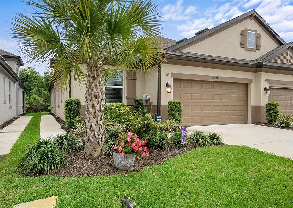 Have you been looking for that high-end luxury living in a first-class community that doesn't have a CDD fee? Well you've found it here with Amberly Villas. The community offers both security through the gated access and the convenience of maintenance free living, so you can get out there and enjoy more of the things you love. You will truly be impressed once you enter through the gates and you see what your low monthly fees cover and how gorgeous the community is. First, the landscaping throughout the community is impeccable and you'll be impressed and thankful that lawn maintenance is one of the items covered, there's a beautiful heated community pool for year round use, outside of the home painting, pest control, and roof replacement. It doesn't get any better than that for only $354 a month! Once you make your way to the home be ready to fall in love. Not only will you see pride in ownership you will be in awe by all of the updates the current owners have done. Upon entering the freshly painted home you'll be taken back by the high tray ceilings with DC motor fans for quiet operation, porcelain tile floors and the perfect open floorplan with the ideal kitchen, dining, living combo. The kitchen is the heart of the home and you will truly find that here. Beautiful quartz countertops go perfectly with the new coastal backsplash, 42" shaker style cabinets with added glass doors to display those special family pieces. All of your lower cabinets in the kitchen and both bathrooms have undercounter pull-out drawers. No more losing items in the back of the cabinets or bending over to search for items. Custom walk-in pantry that maximizes your kitchen storage needs. All stainless steel appliances including a newer Samsung smart refrigerator. The home offers that ideal split bedroom design with a third bedroom/den and a French glass door entry. Your main bedroom has the high tray ceilings, ensuite, and walk-in closet with closet maid closet system for maximum storage. If you enjoy spending time outdoors the extended lanai is the perfect space as it backs up to a private conserved preserve. You have a full size indoor laundry, collapsible folding table, with smart LG washer and dryer with pedestals. Your garage has brand new epoxy flooring, ceiling storage rack and the garage door is hurricane proof. If all of that isn't enough you're close to local restaurants, shoppes and breweries. But the best part is its a 30 minute drive to both of the areas award winning beaches. You can have the option to chose which is your favorite... Anna Maria Island or Siesta Key Beach.. Call and schedule your private showing and start living that Florida Lifestyle you've dreamed of.