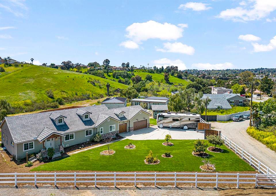 Gorgeous Custom-Built Single-Story (2018)! RV Parking & Electrical! Over 4 Scenic Acres with Annual Creek and Direct Access to Horse & Recreation Trails (BLM Land)! Massive Lower Level Lot along Creek. Location is just 20 minutes from Coronado and Downtown San Diego! Solar System (Owned)! This property is turn-key and move-in ready! Relax, unwind, and enjoy peaceful San Diego living. As you are welcomed inside through the craftsman inspired front porch, you are greeted with a modern farmhouse design, spacious open floorplan, and views through the living space out into the green and lush valley. Enjoy cooking and entertaining family and friends in the gourmet kitchen that features stainless appliances and farmhouse sink, fresh white cabinets with quartzite counters, walk-in pantry, and a large family-style island. Adjacent to the kitchen are two additional dining areas with direct access to the outdoor patio. This wing of the home includes a home office (optional 4th bedroom) and full bath. Relax and unwind in the spacious master suite with bay window and private direct access to the backyard. Through the hanging barn door is the master bath that features a large soaking tub, walk-in shower, dual sink vanity, and large walk-in closet. Further down the hall are two additional bedrooms with a jack and jill (shared) bath. Additional modern amenities in this home include a tankless water heater, large solar system (owned), recessed lighting, and allergy friendly flooring (no carpet). The front of this property is wrapped with new vinyl fencing and includes a large double-sided wood & metal driveway gate. Also located on the property is a detached shed and chicken coop. Love the outdoors? Just minutes away is Sweetwater Summit Regional Park that offers camping, hiking, biking, wildlife observations, Etc. With enough space for your boats, RVs, car collection, farm animals, or your personal hillside vineyard, this incredible estate is perfect for those who are wanting to enjoy peaceful living with close access to everything!